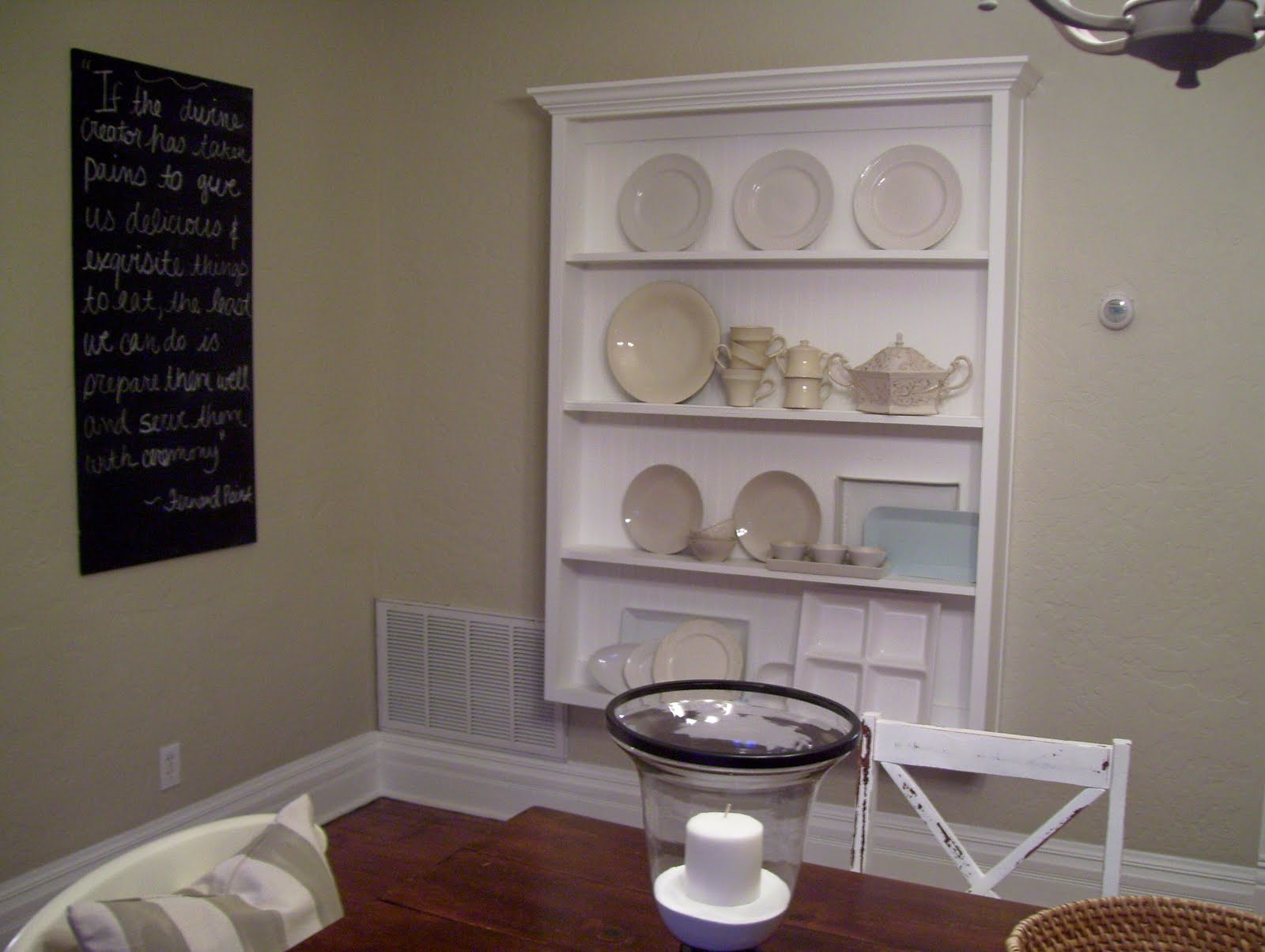 I saw this while watching the movie (photo above is a movie still) and fell in love with it, so, I spent several weeks designing my own version and then built it, pretty inexpensively, by using pine planks, bead board panels and crown molding. And I must say, I'm pretty happy with my version. I filled it with my collection of plates and platters. :)
